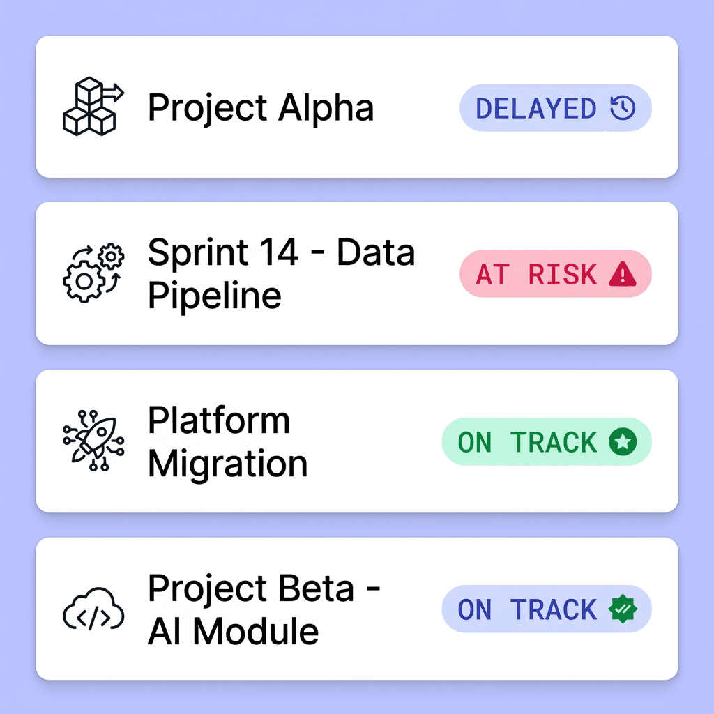 Stakeholder updates require stitching together Jira, Slack, and gut feel